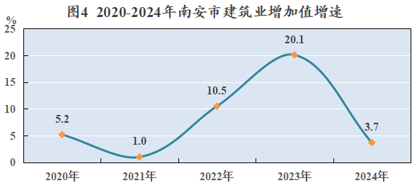 全年建筑业增加值80.20亿元,比上年增长3.7%。全市有总承包和专业资质的建筑业企业169家,实现建筑业总产值增长0.4%。完成房屋施工面积924.90万平方米,下降15.0%;房屋竣工面积444.23万平方米,增长66.0%。建筑业总产值达到亿元及以上的企业17家,其中5亿元及以上的企业6家。