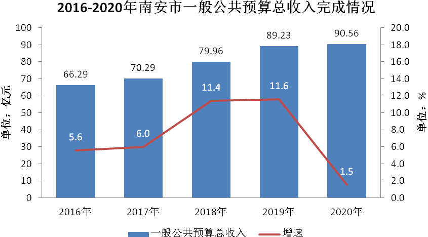全年一般公共预算总收入完成90.56亿元,比上年增长1.5%。其中,一般公共预算收入53.05亿元,增长6.0%;中央财政收入37.51亿元,下降4.3%。全市一般公共预算支出90.11亿元,增长13.6%。其中:一般公共服务支出6.61亿元,增长8.6%;教育支出22.16亿元,增长8.9%;科学技术支出1.97亿元,增长9.6%;社会保障和就业支出11.96亿元,增长2.8%;卫生健康支出9.00亿元,增长24.2%。全市实现工商税收87.03亿元,下降0.2%。