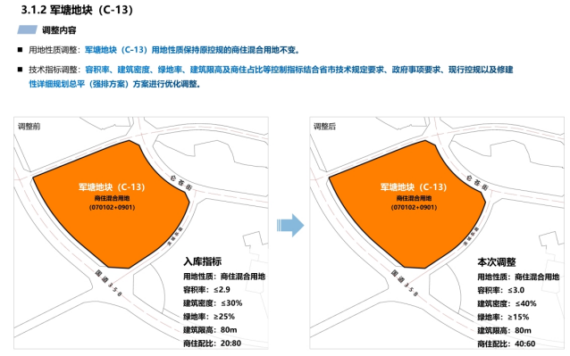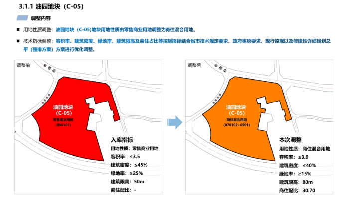 3、利于维护公共利益,保障居民权益。本次调整论证对商住配置进行提档,提高了商业安置量,对地块的商住占比进行重新优化,解决了片区改造中安置店面面积及间数不足的一大难题。