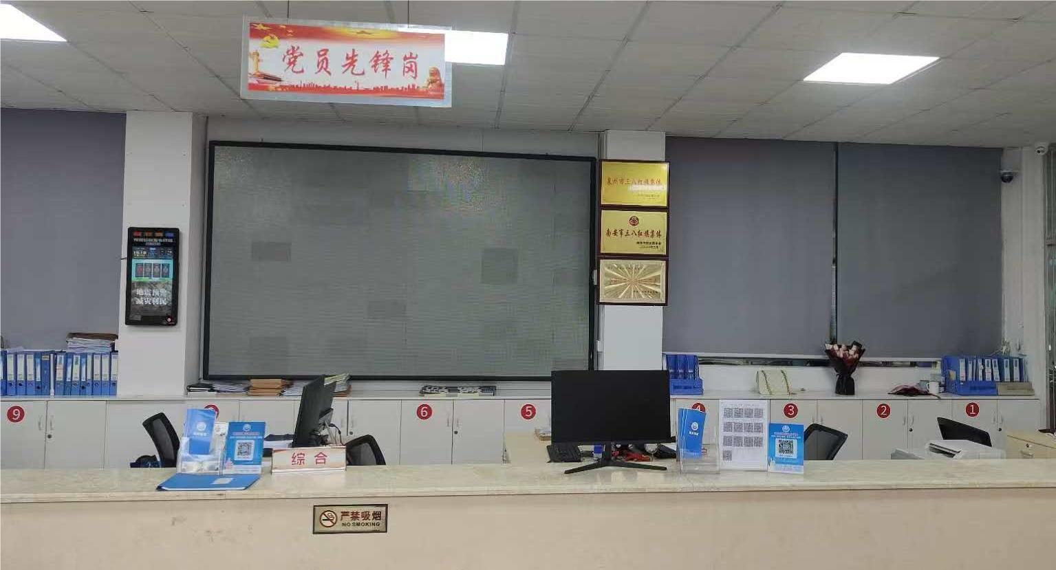 门口设有咨询台,群众不了解相关办事项目的,可咨询服务台工作人员。